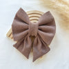 A velcro fastener is securely sewn to the back of the bow to attach to your dog's collar. Sailor Bows will fit collars up to 1” wide. Simply wrap it around the collar.